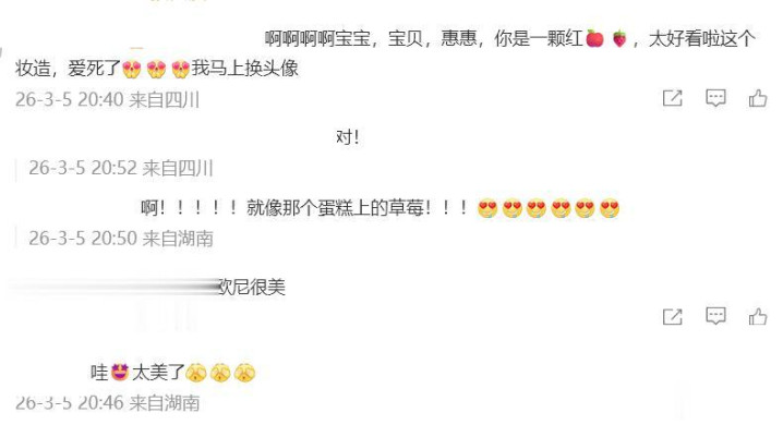 粉丝们在看到尹恩惠的新造型时,不少东说念主暗示很心爱她这个造型,这个造型给东说念主一种很飘逸的活力感。有网友评价暗示尹恩惠的这个草莓色服装造型,就像是她晒出的巧克力蛋糕上的草莓相通可儿,有一种甜好意思俏皮的气质。